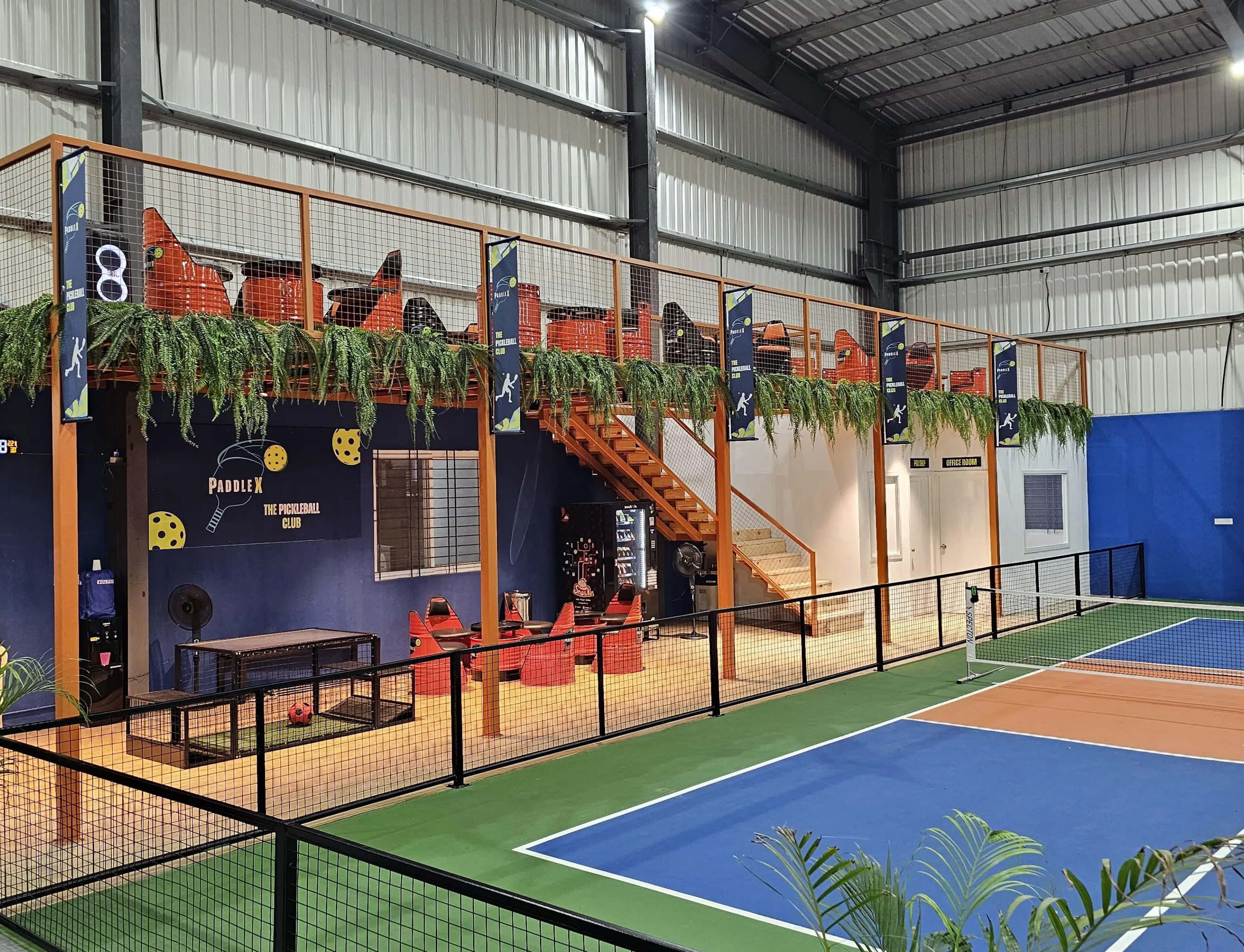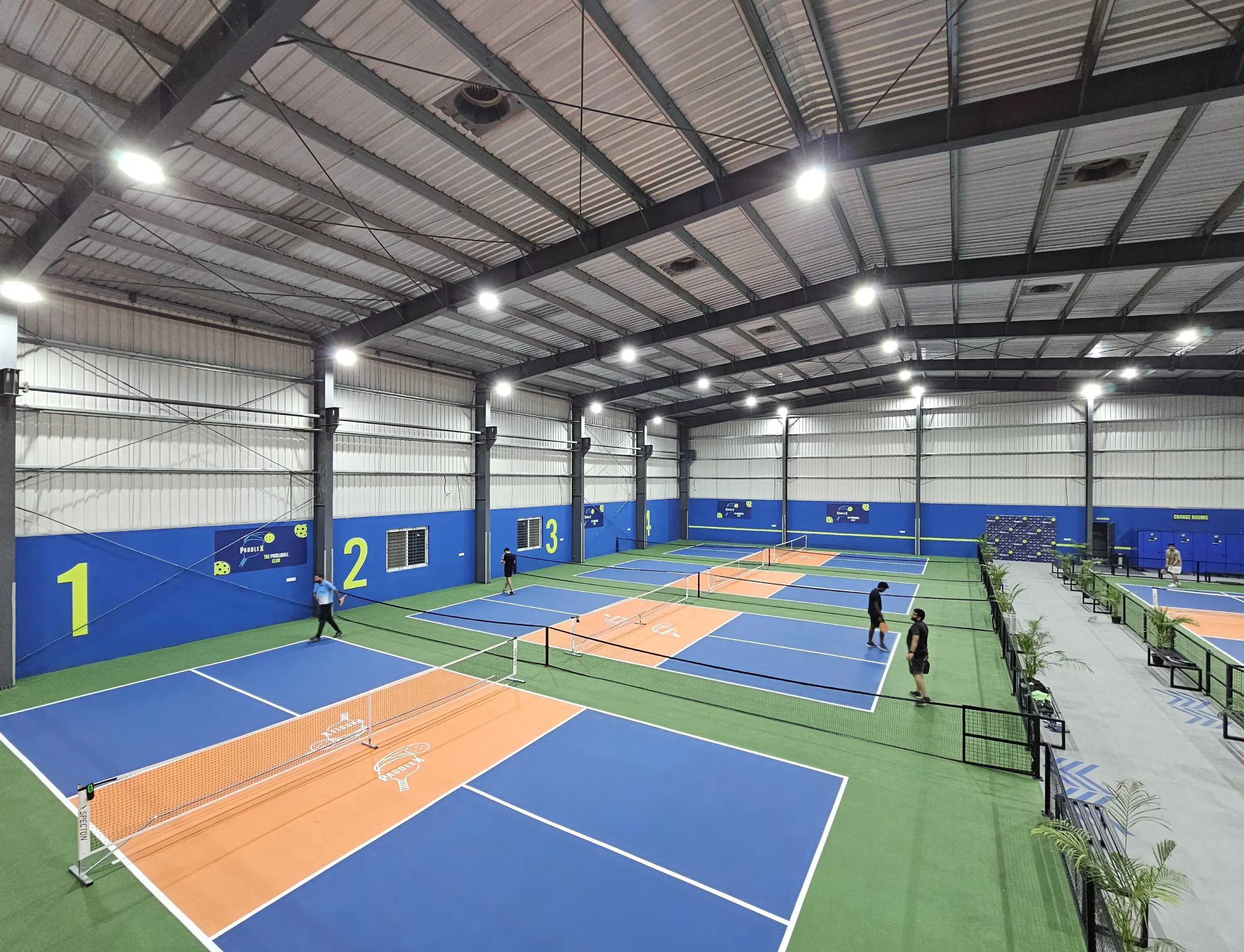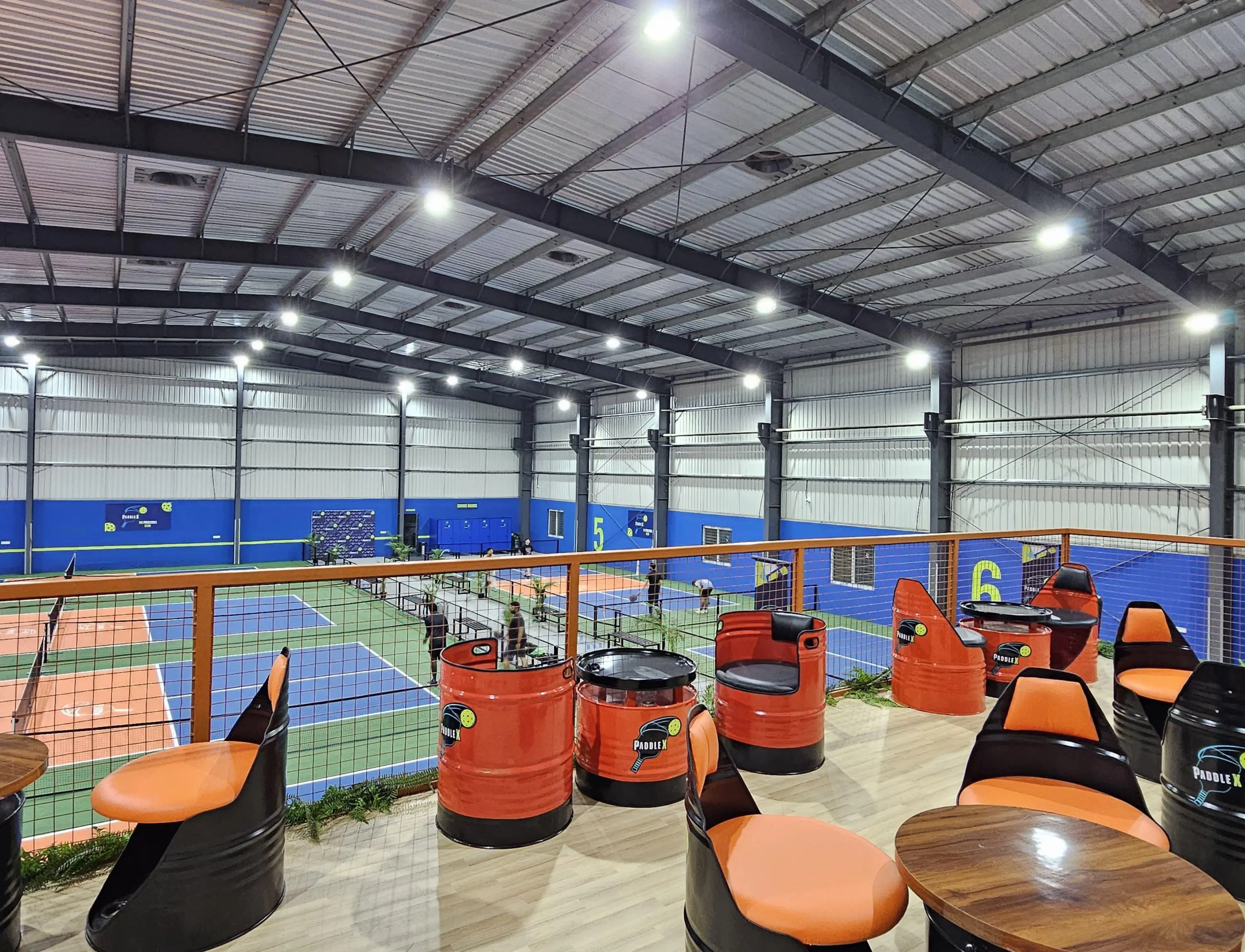 At PaddleX, we are committed to providing a top-tier pickleball experience with professional 9-layer official pickleball flooring for optimal play. Our facility is designed for players of all levels, ensuring a seamless and enjoyable game, whether you're just starting out or competing at an advanced level. We offer six well-maintained courts, along with premium amenities such as an upper viewing deck, comfortable seating, certified coach, changing rooms, clean shower-equipped washrooms, a vending machine, a pro shop for equipment rentals and purchases, a relaxing lounge area, and ample parking.